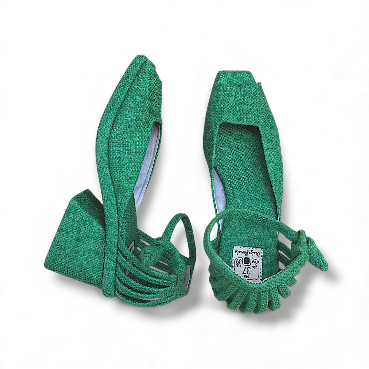 Sandálias em linho de tapeçaria de alta qualidade e solado em látex vegetal (biodegradável)