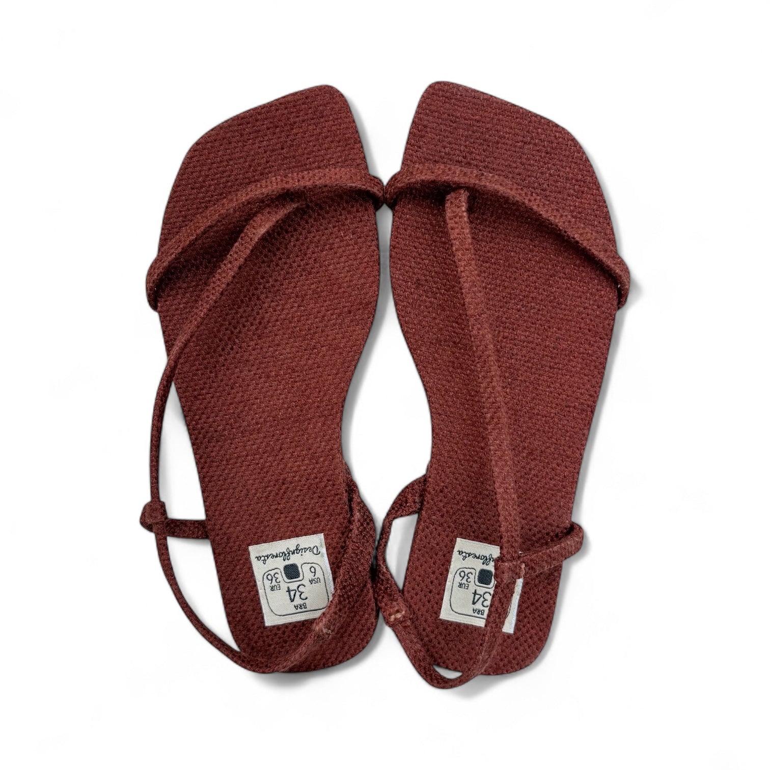 Sandália Capim, feita com linho rústico macio de altíssima qualidade. Ajuste com elástico na lateral. Solado em látex vegetal, biodegradável e antiderrapante.