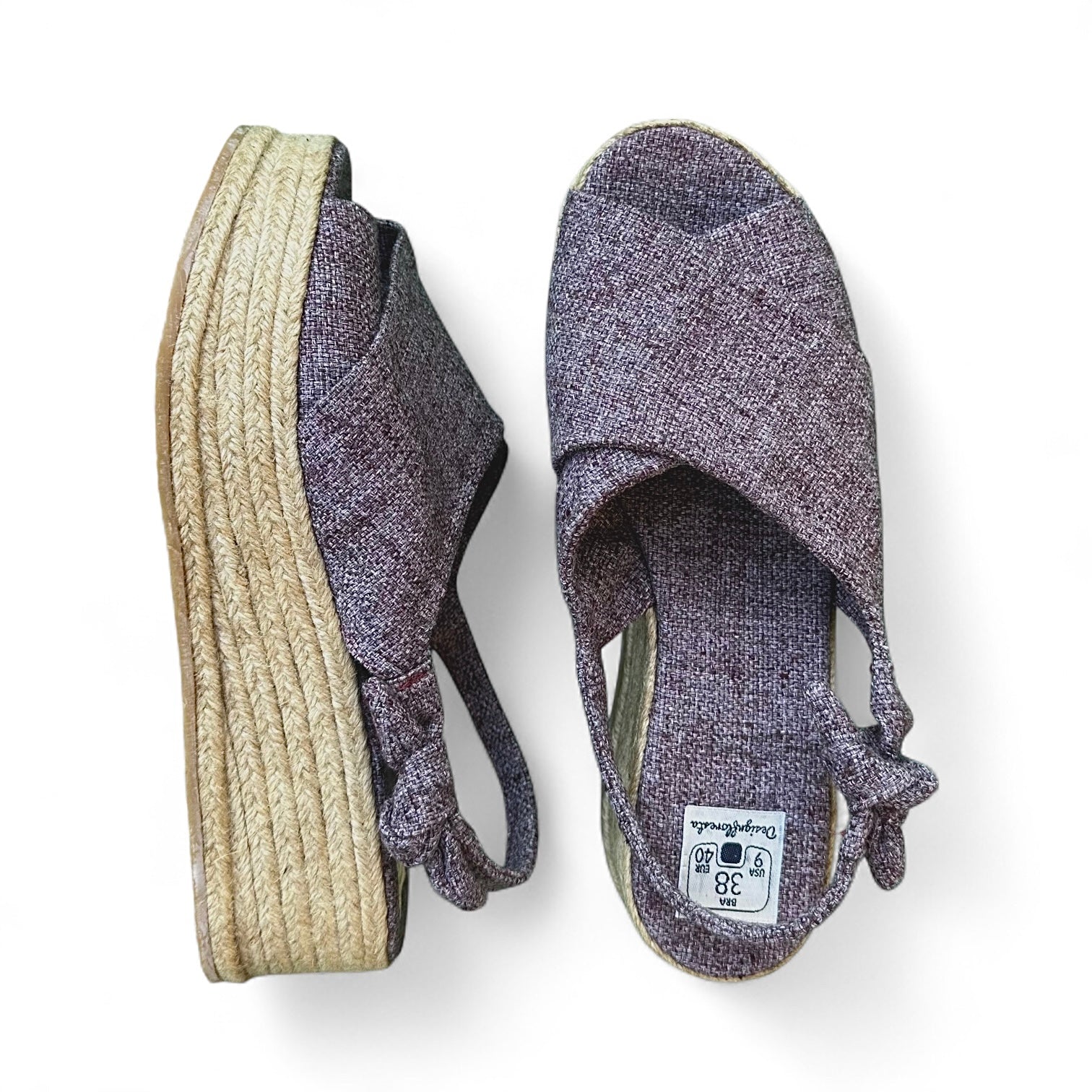 Sandálias em linho de tapeçaria de alta qualidade e solado em látex vegetal (biodegradável)