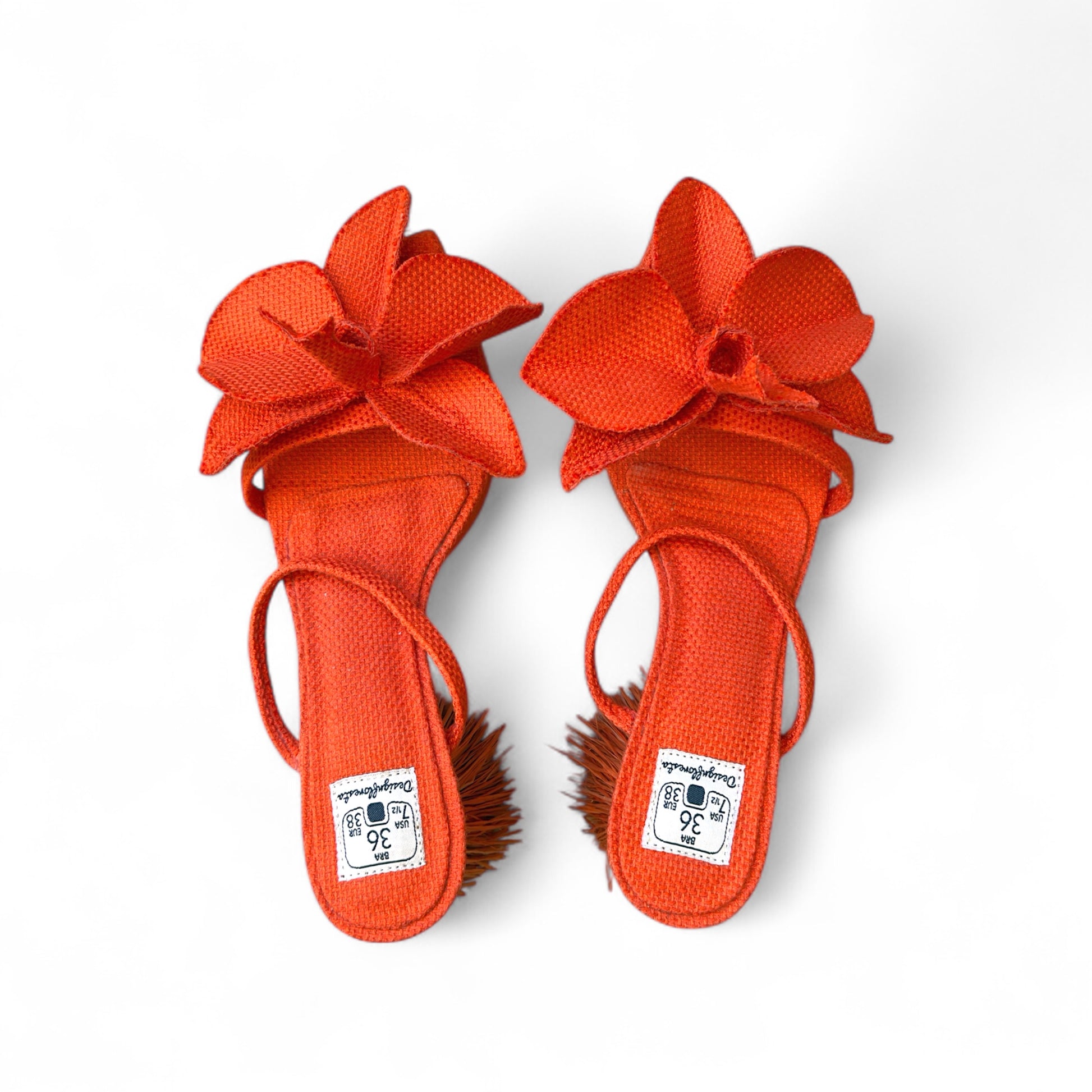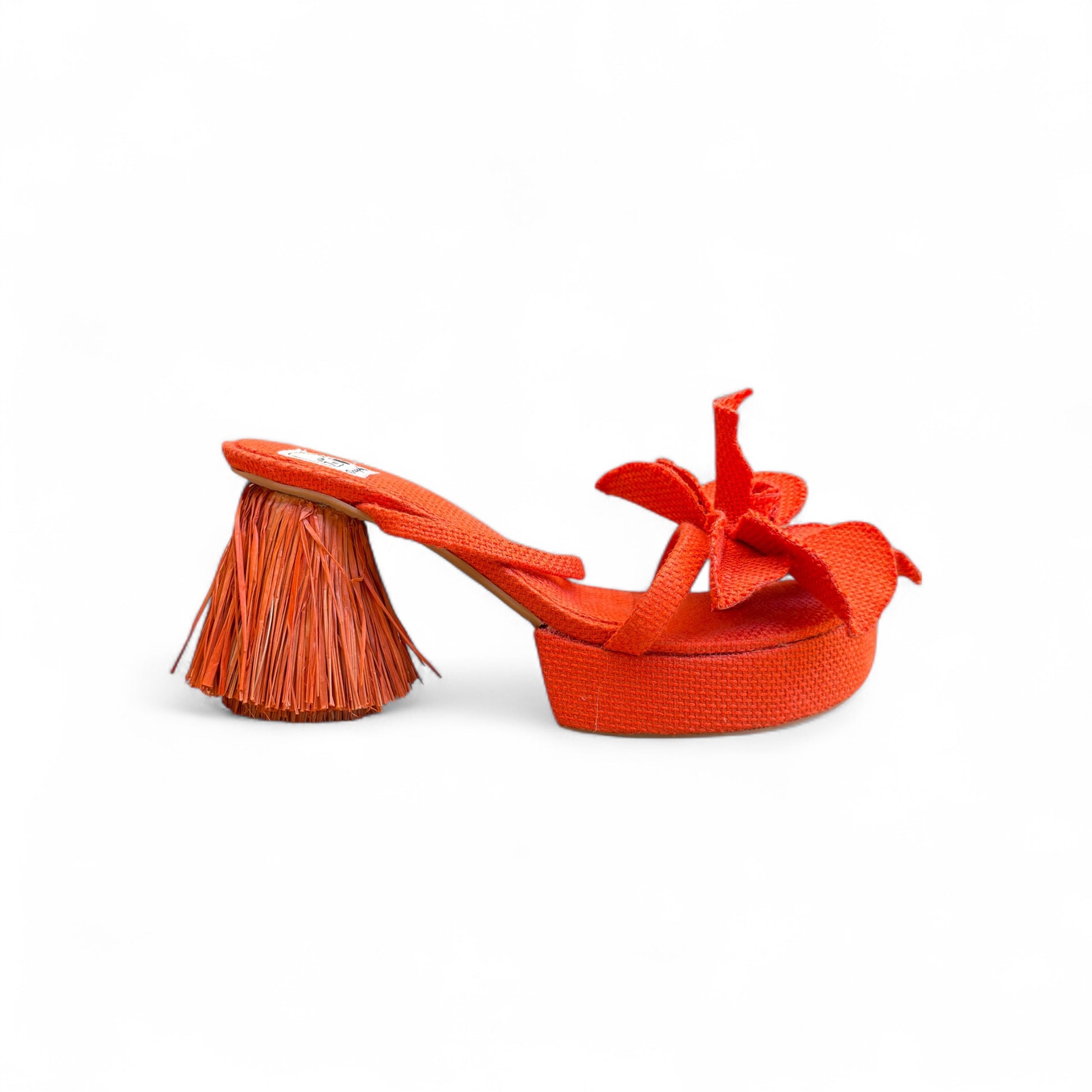 Sandália Orquídea Gigante Cor Abóbora Meia Pata 3cm Salto 9cm n.36