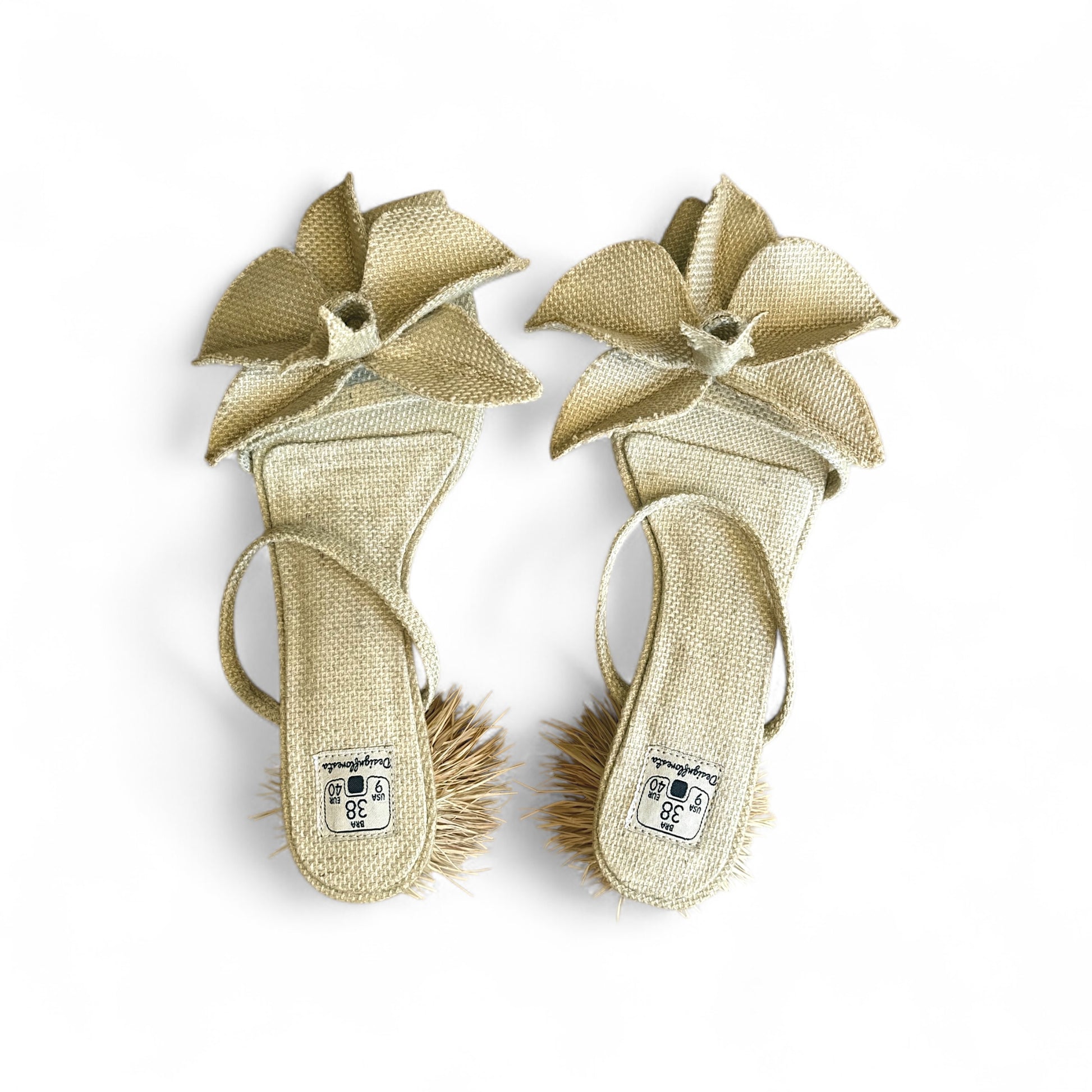 Sandália Orquídea Gigante Cor Areia Salto Revestido Com Piaçava Altura 3cm n.38 e n.39