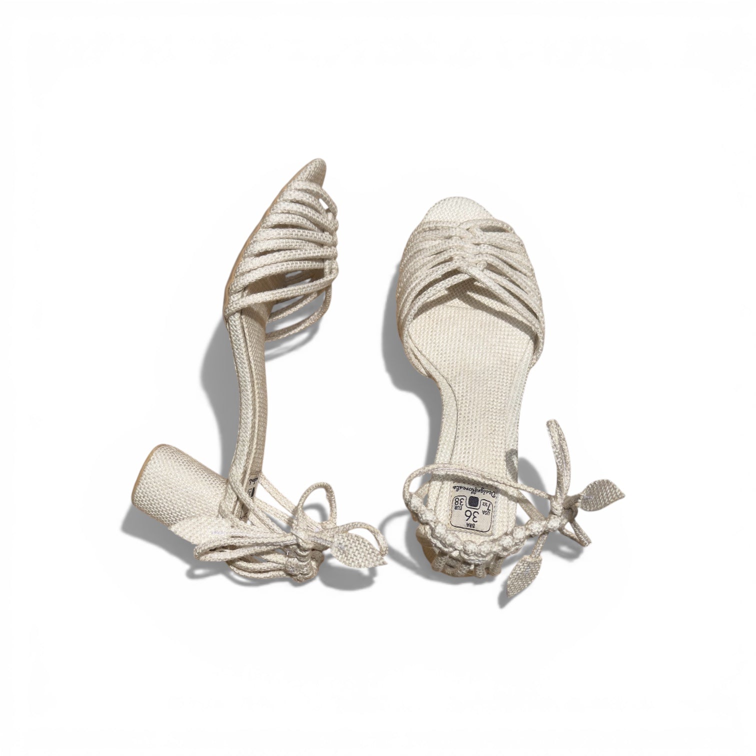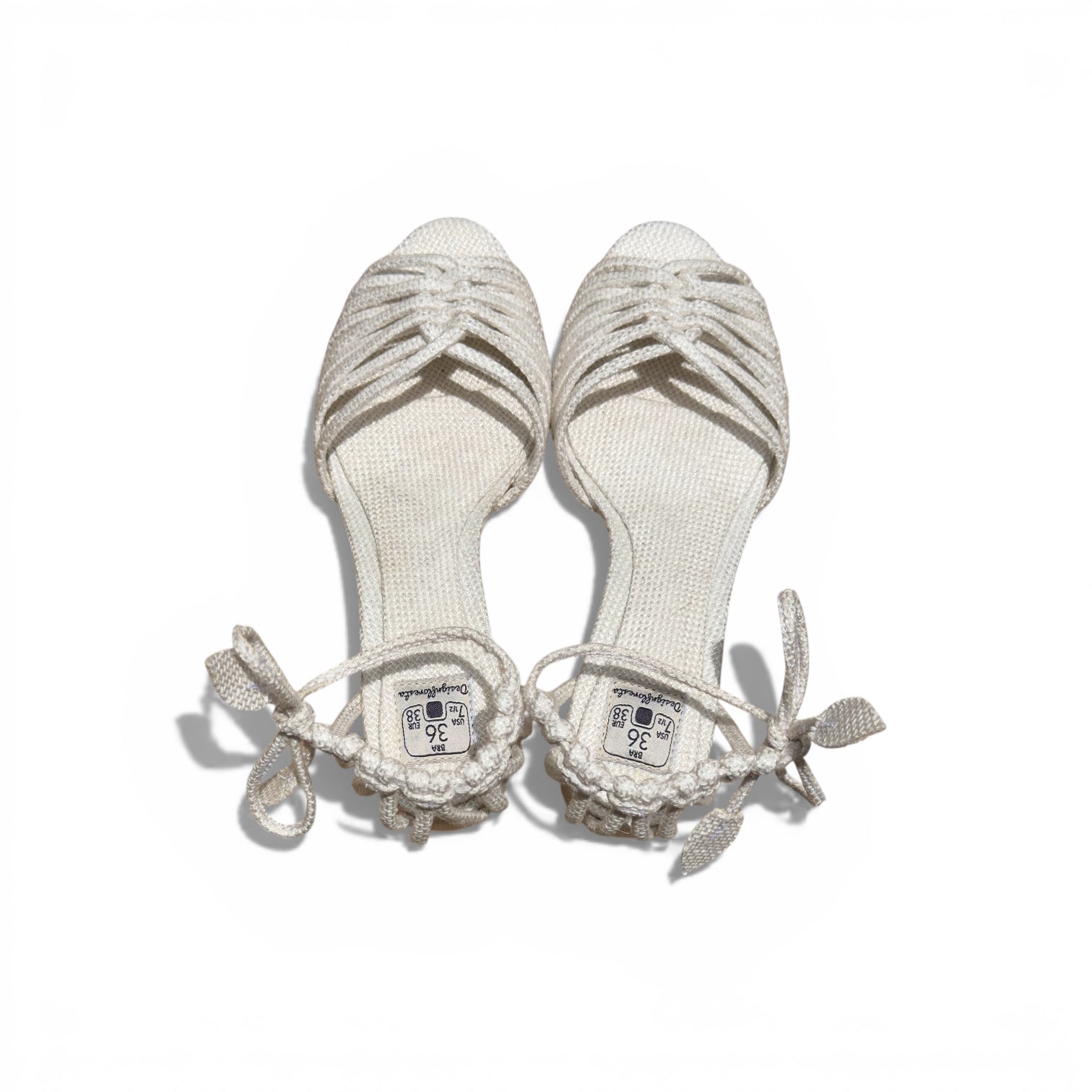 Suas tiras de linho, cuidadosamente entrelaçadas, envolvem os pés com conforto e sustentação.