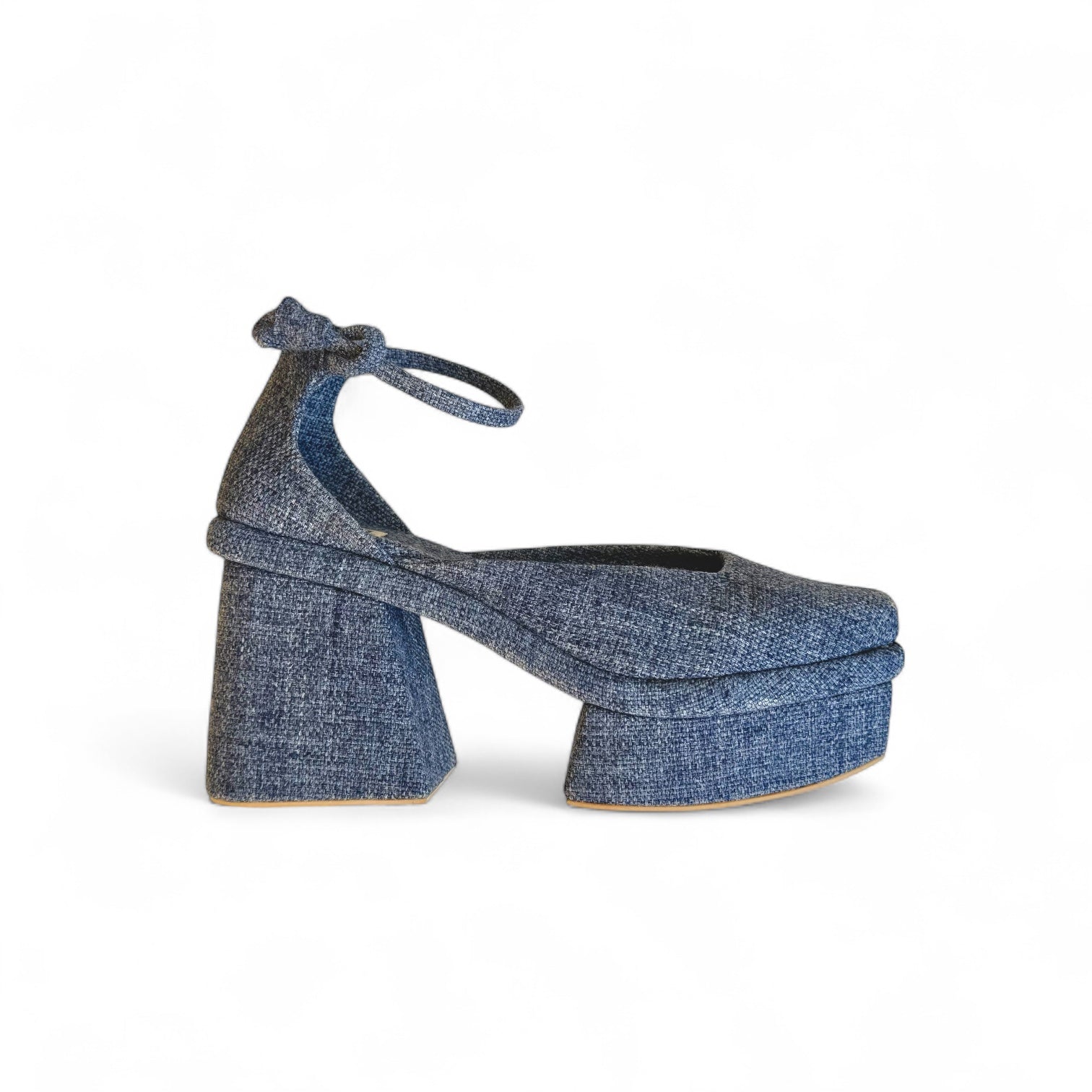 Sapato Kyoto Pata Cor Jeans Salto Bloco 9cm Meia Pata 3cm N.37